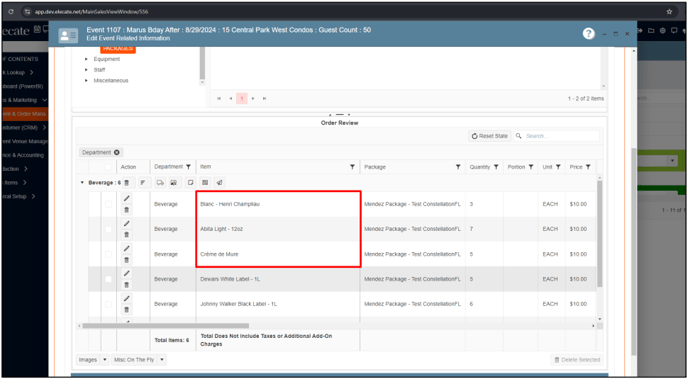 7. Double click on the package you want, once the system displays the window with the package information, then go to Beverage Package Details section, here the user will be able to select the substitutions for the beverage items.