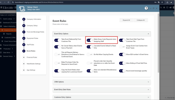 4. Go to Event Rules and turn on the toggle: Make Dress Code Required when Assigning Staff, save the changes.
