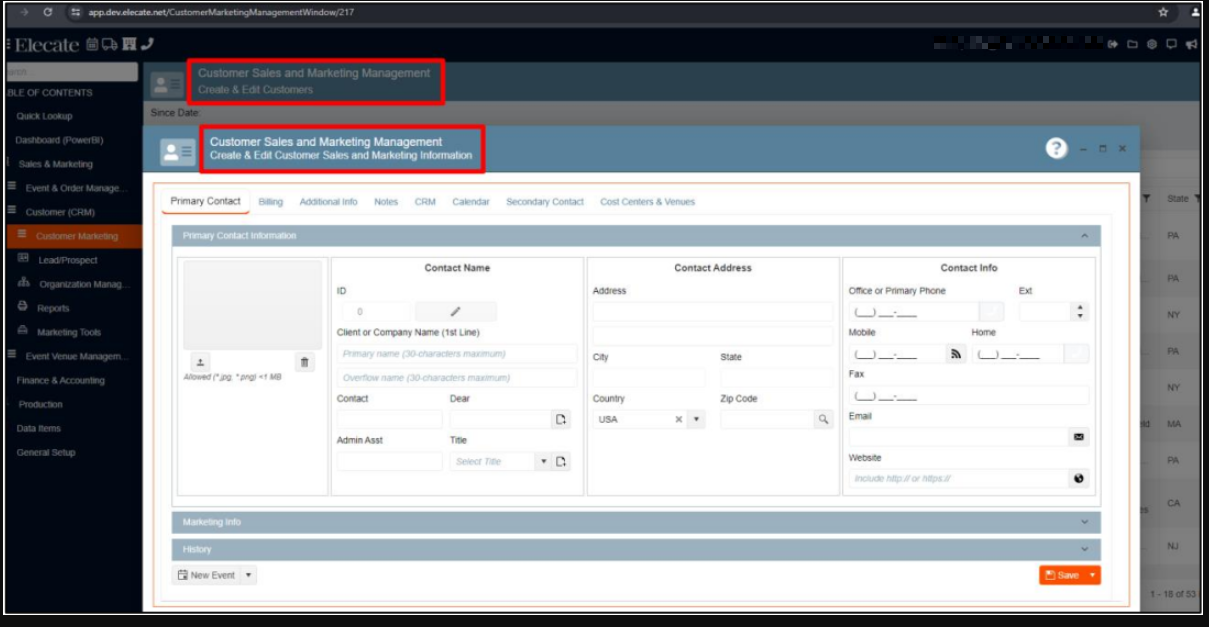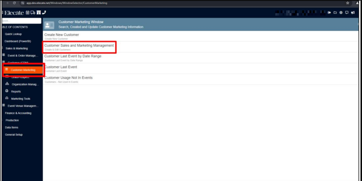 1. Renaming the Customer Marketing Management window to Customer Sales and Marketing Management window:
