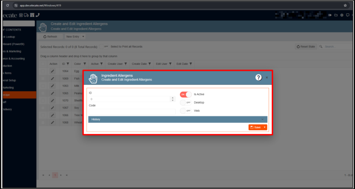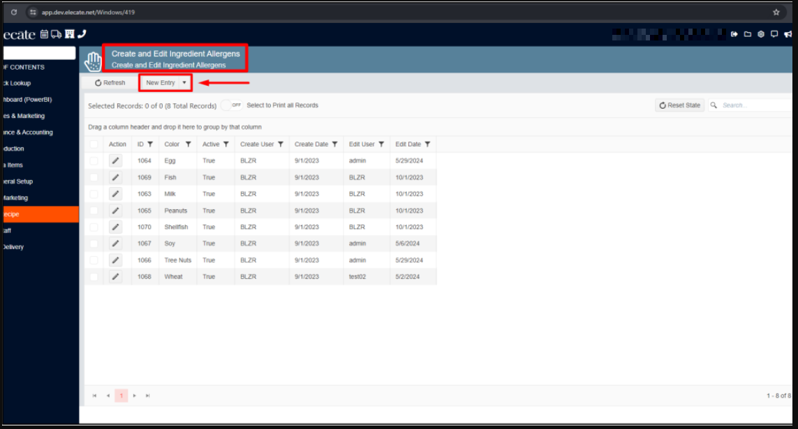 2. Adding a ¨New Entry¨ functionality in the Create and Edit Ingredient Allergens: