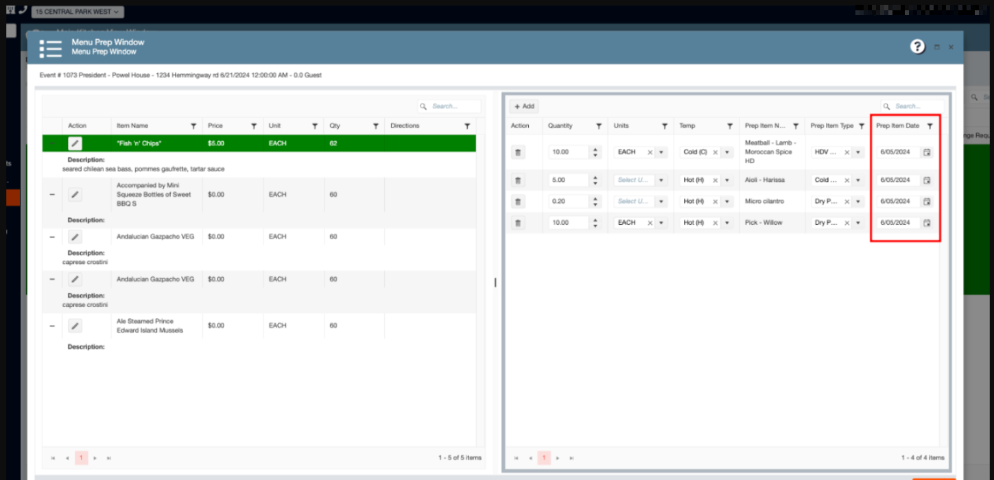 The Appsetting: PreparationLeadTime was created, so the user can change the default value to 2 days prior to the event, for the ¨Prep Item Date¨ column within the ¨Menu Prep Window¨.