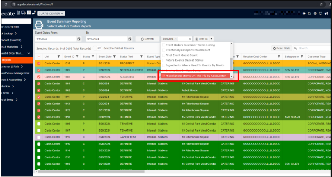 4. Click the pencil on any event where the Menu status is in "Submitted" status or "In-Production" status