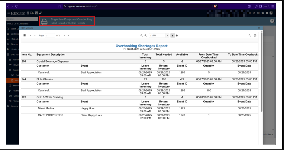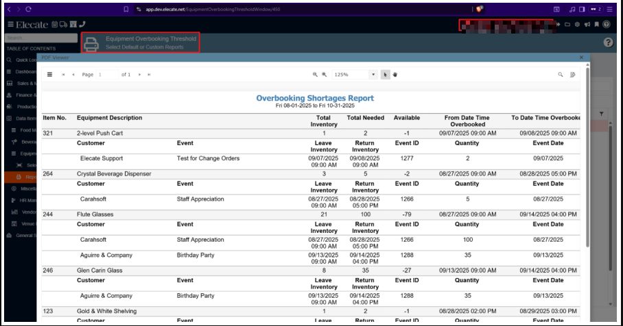 Report generation from the Event and Order Management module was verified in Empower. Reports are downloaded in PDF format and displayed correctly.