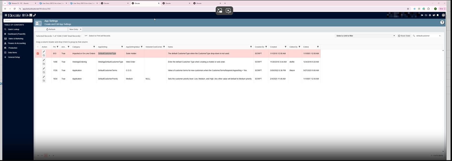 8. Wanting that prospects become customers, to have the value for the "DefaultCustomerTerms" appSetting in it: