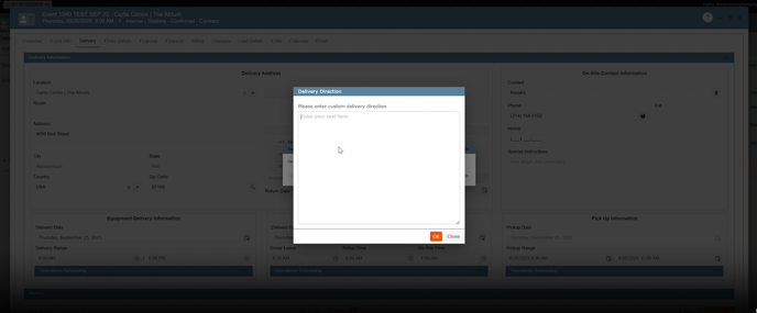 7. In the following box, select the Use Custom button, enter the Delivery Direction, click on OK, if you need to update the information on that field, you just need follow the same steps.